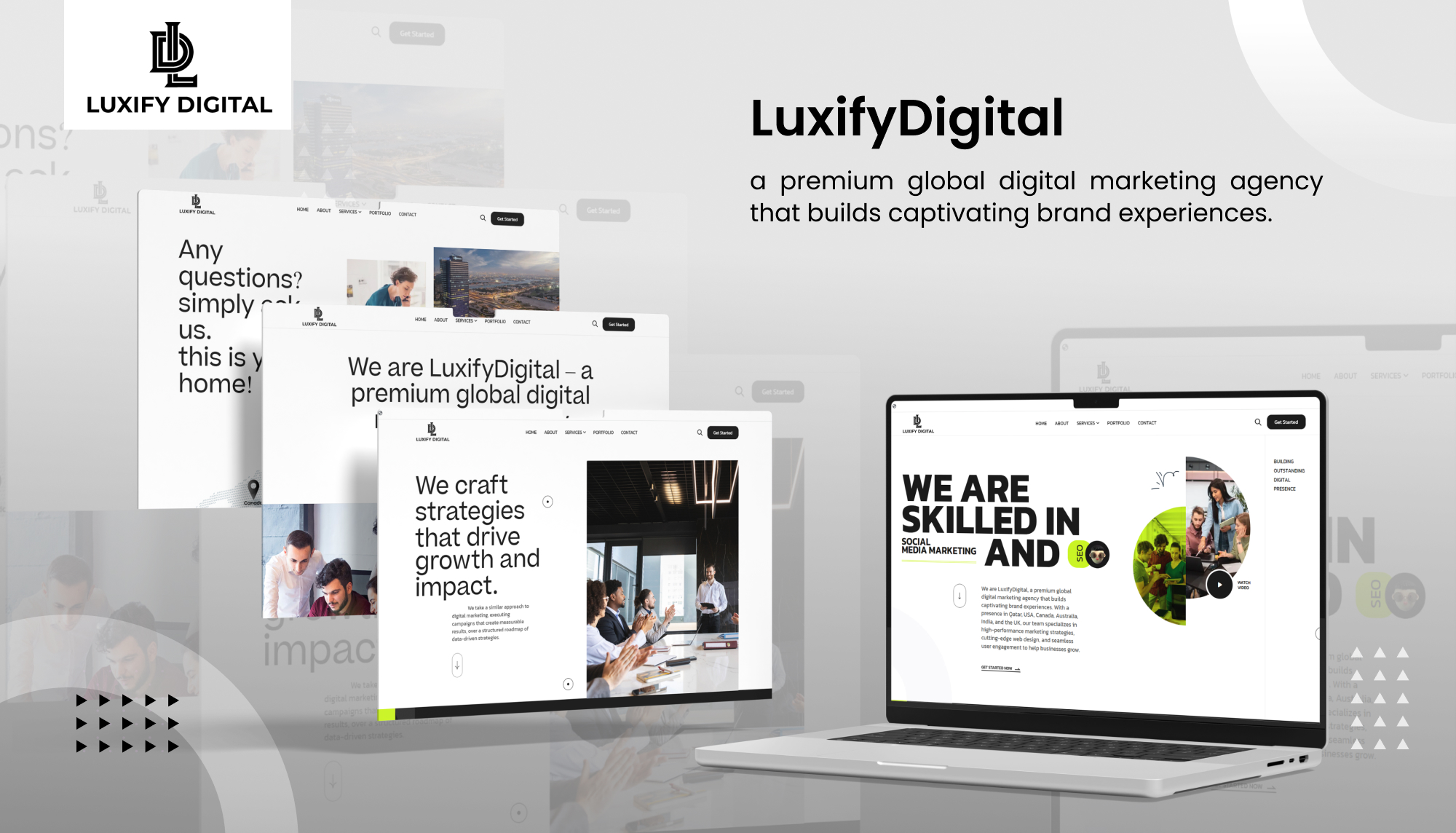 A comprehensive corporate branding platform developed with a modern, high-contrast UI to showcase brand identity and robust digital presence.